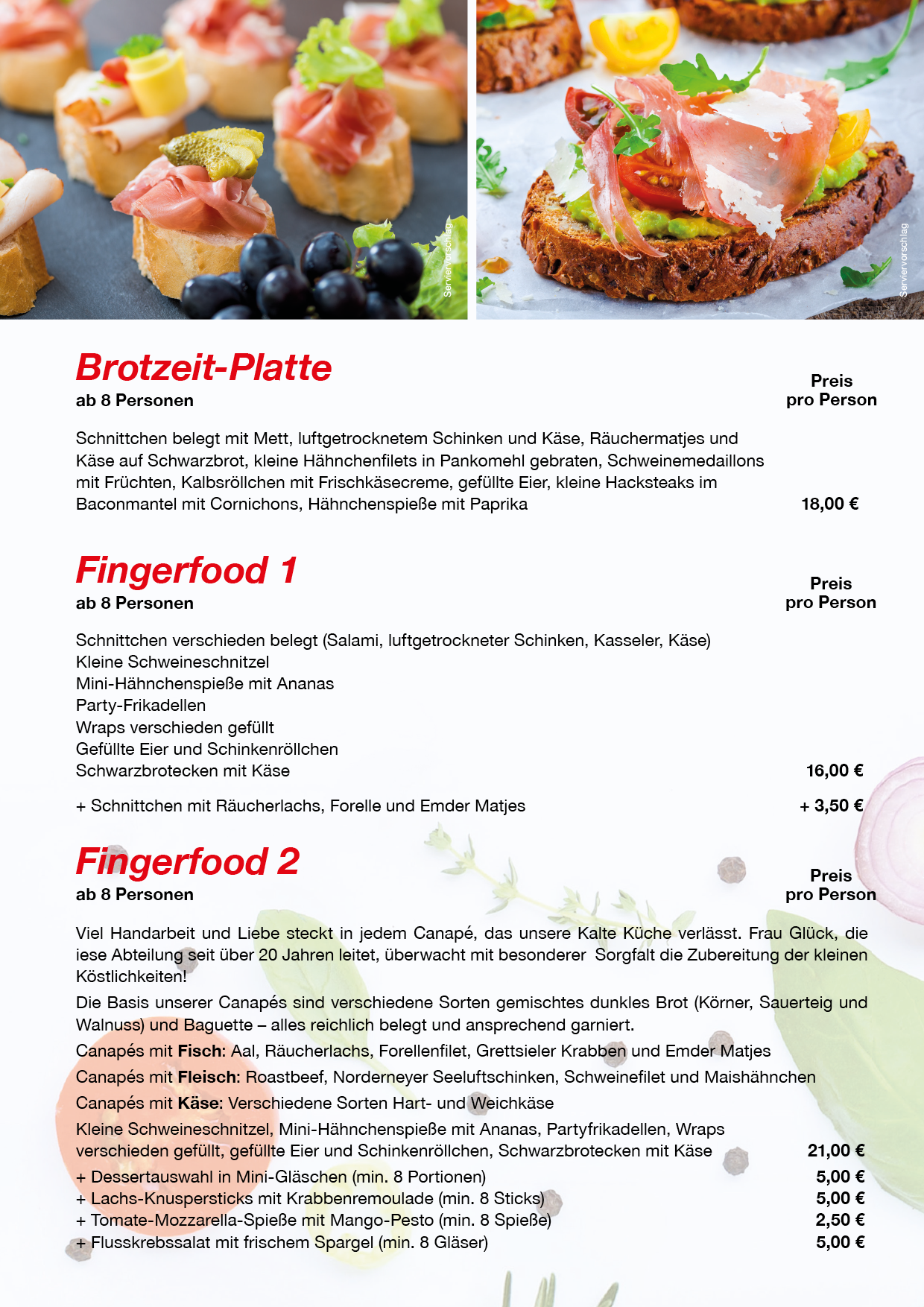 Viel Handarbeit und Liebe zum Detail steckt in jeder kalten Platte, in jedem Canapé und allen anderen kleinen Köstlichkeiten, die unsere Kalte Küche verlassen. Probieren Sie selbst!